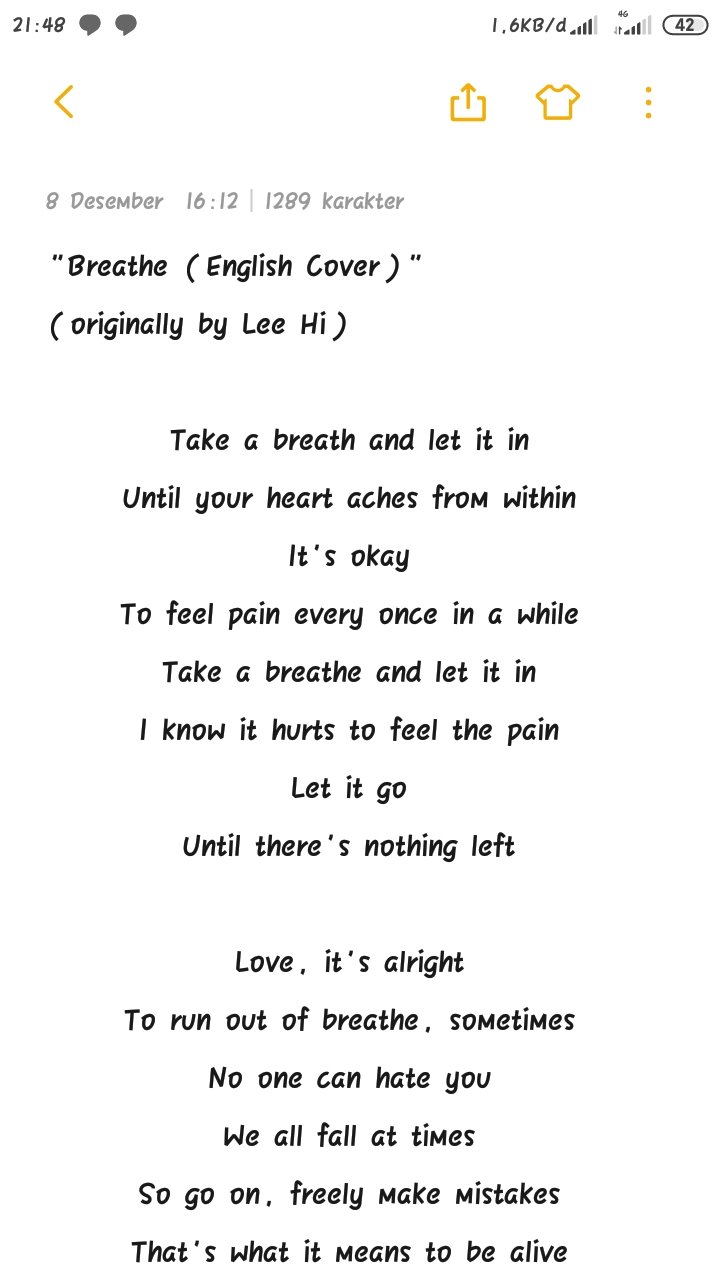 Breathe Lee Hi English Lyrics Docx Verse 1 Take A Deep Breath Until Both Sides Of Your Heart Get Numb Until It Hurts A Little Let Out Your Breath Course Hero